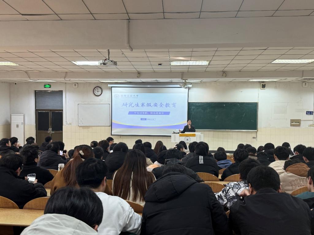为进一步强化寒假前后研究生教育管理,筑牢研究生安全防范屏障,1月16日下午,材料学院分别在东区阶教101、本部教一106组织召开寒假研究生安全教育专题会议,对 2026年寒假前后研究生教育管理工作作出全面部署,全体研究生参会。