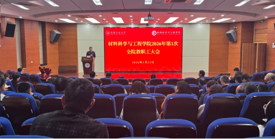 3月23日,太阳集团网tyc9728在秀山校区振华图书馆学术报告厅召开2026年第一次全院教职工大会。学院领导班子、全体教职工和学生代表参加,会议由院党委书记杨建主持,科研院院长吴宣够应邀作专题辅导报告。会议深...