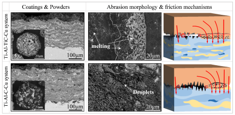 钛合金与铜合金作为现代工业中备受瞩目的高性能金属材料,因其各自优异的强度、耐腐蚀性及导电导热性,在航空航天、海洋工程及电子通讯等领域发挥着关键作用。然而,在严苛服役环境下耐磨性不足限制了其进一步推广应用。张世宏教授团队采用热喷涂技术分别在钛合金和铜合金表面成功制备出高性能耐磨防护涂层,为解决上述材料在极端环境中的磨损难题提供了创新思路与技术支撑。